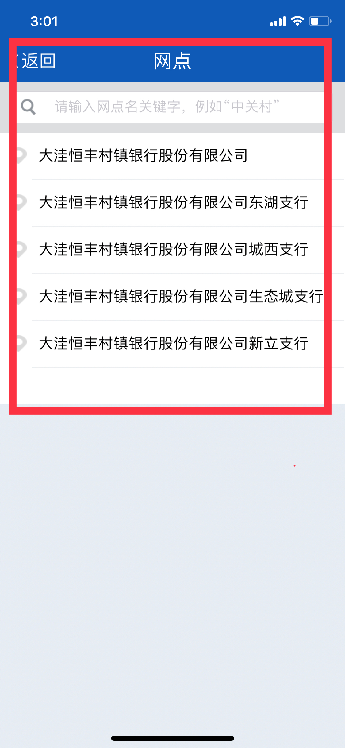 手工输入“大洼恒丰村镇银行股份有限公司/大洼恒丰村镇银行股份有限公司XX支行”